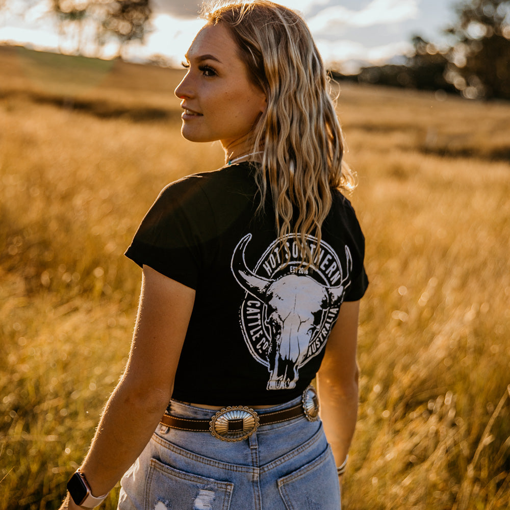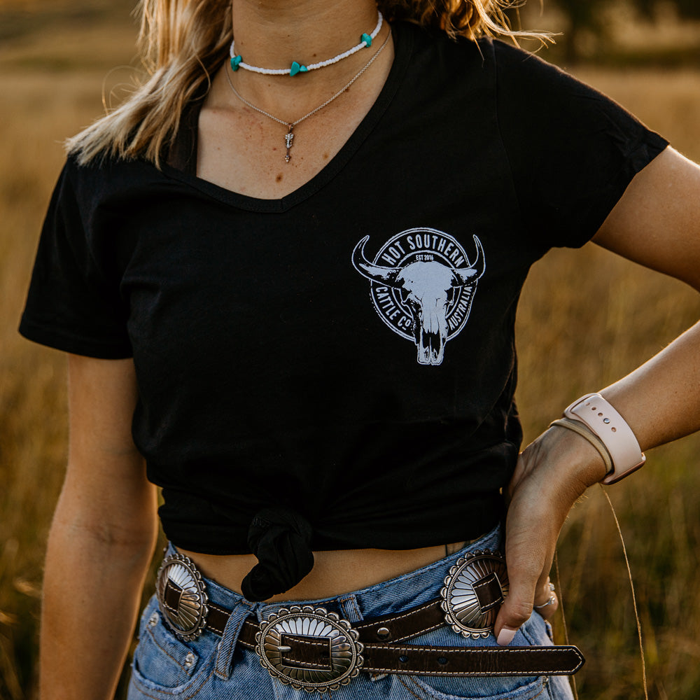 Cattle Co Ladies V-Neck Black Tee