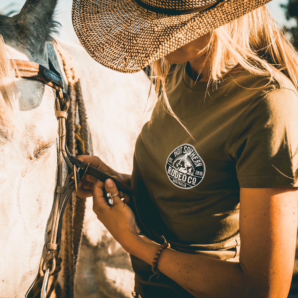 Bronc Rodeo Co Ladies Olive Tee