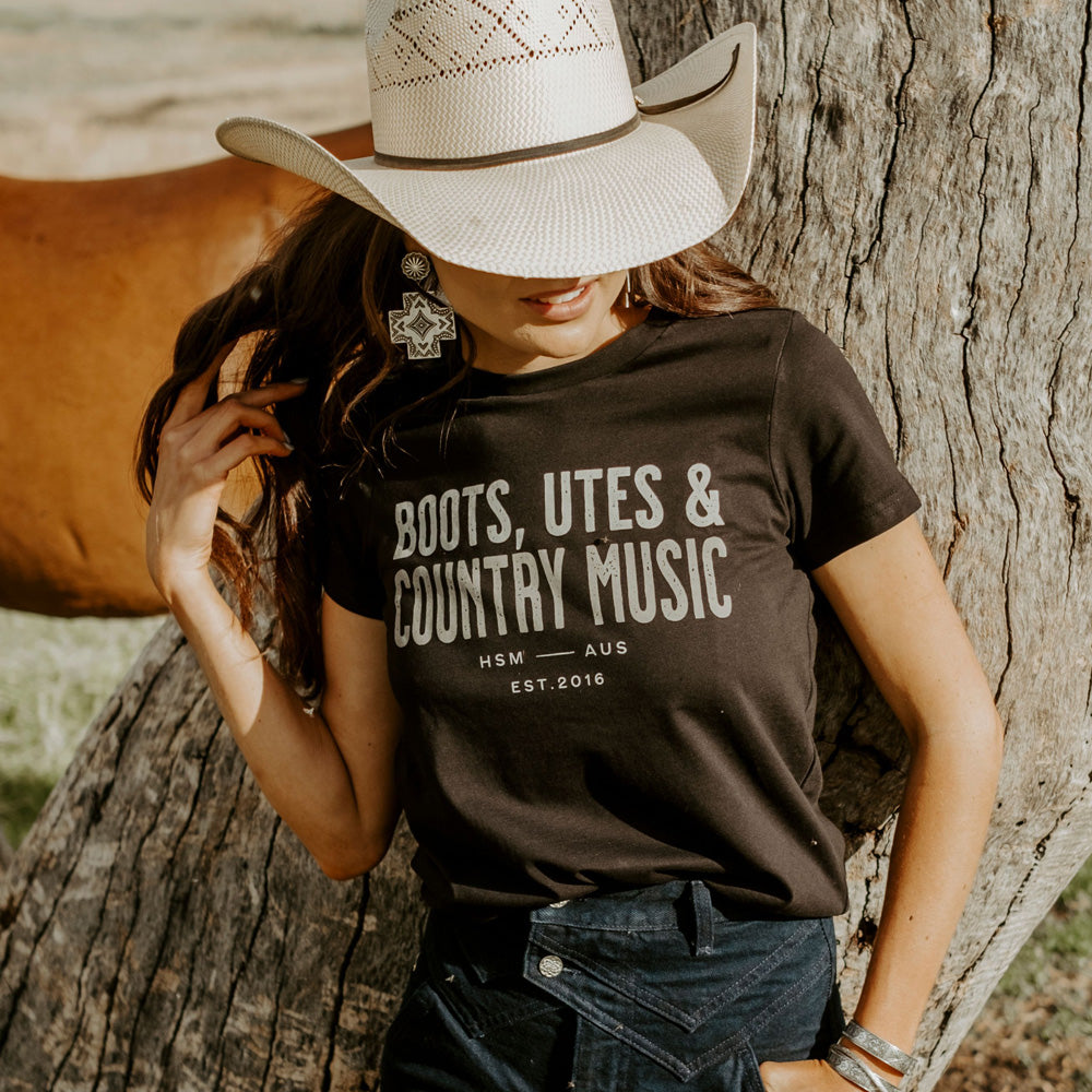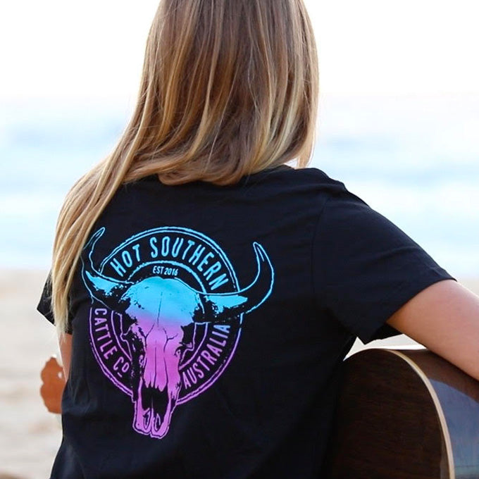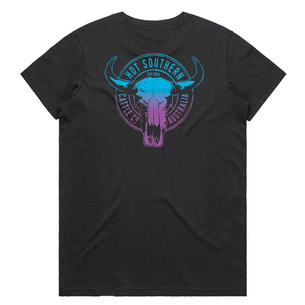 Turquoise/Purple Cattle Co Ladies Black Tee