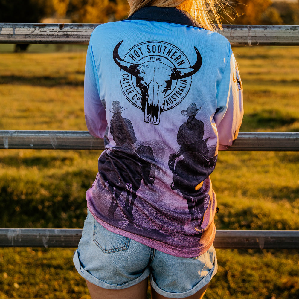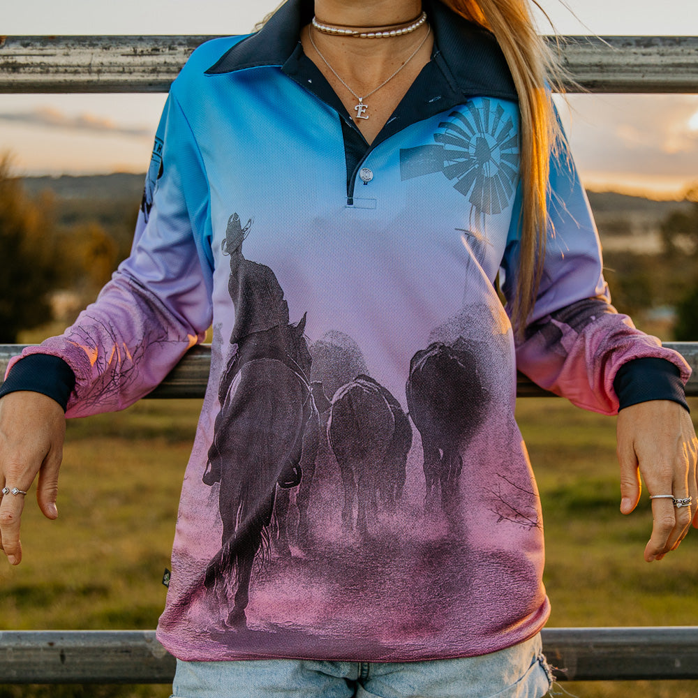 Cattle Co Adults Fishing Shirt - Blue & Pink Drover